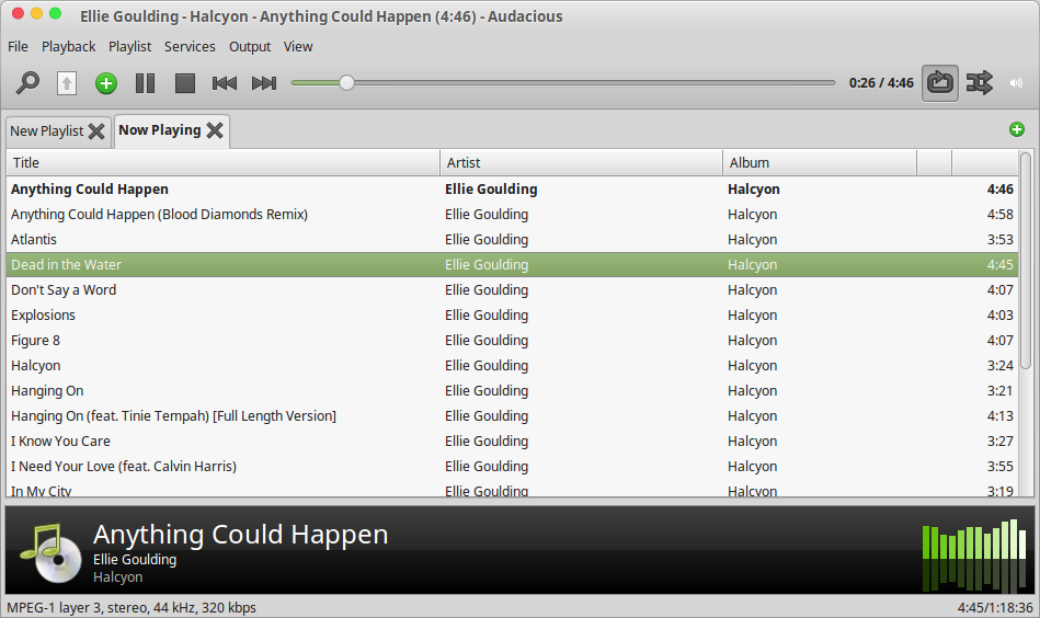 Audacious support drag and drop folders and individual song files, look for artists and cds in your whole music library, or develop and customize your personal custom-made playlists. Pay attention to CD’s or stream music from the Internet. Customize the sound with the visual equalizer or experiment with LADSPA impacts.